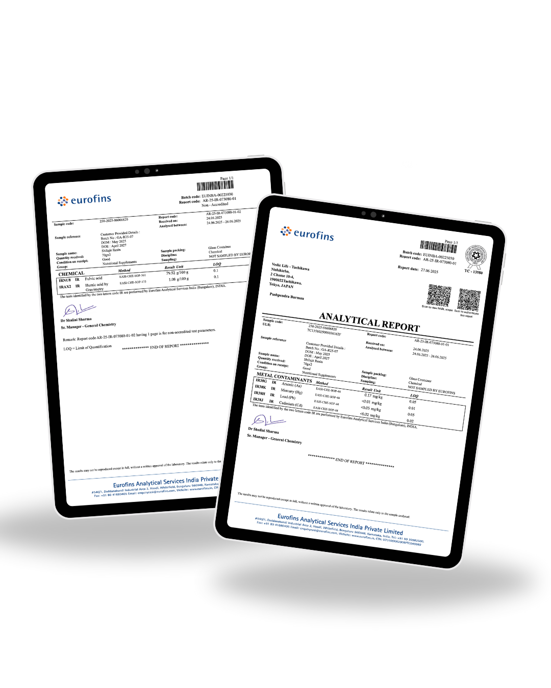 Our Shilajit is independently lab-tested to meet Japan’s safety regulations and global standards, including those set by the European Union—surpassing typical Federal limits.We ensure purity and transparency beyond industry norms.